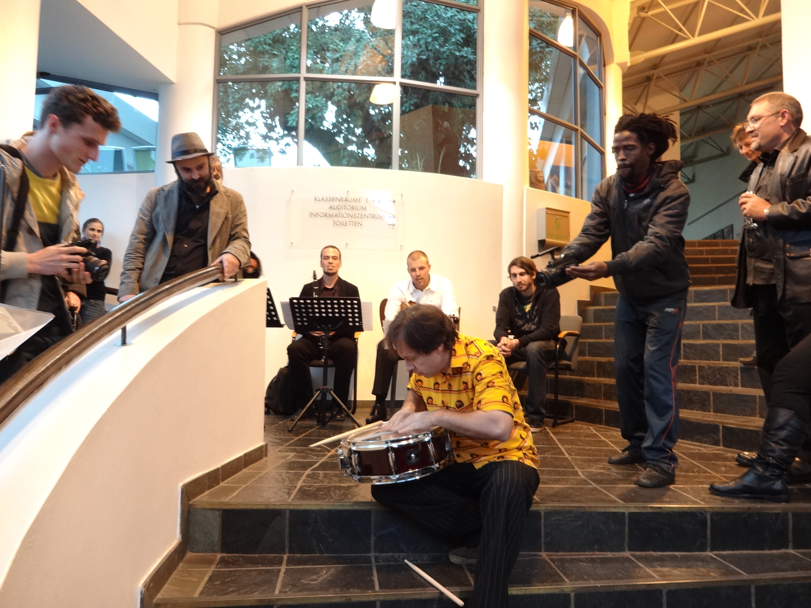 Here are just some fun pictures – but seriously, Indra Wussow (one of the festival directors) has broadened our perspectives by incorporating visual art, dance, and music into poetry. — MZ