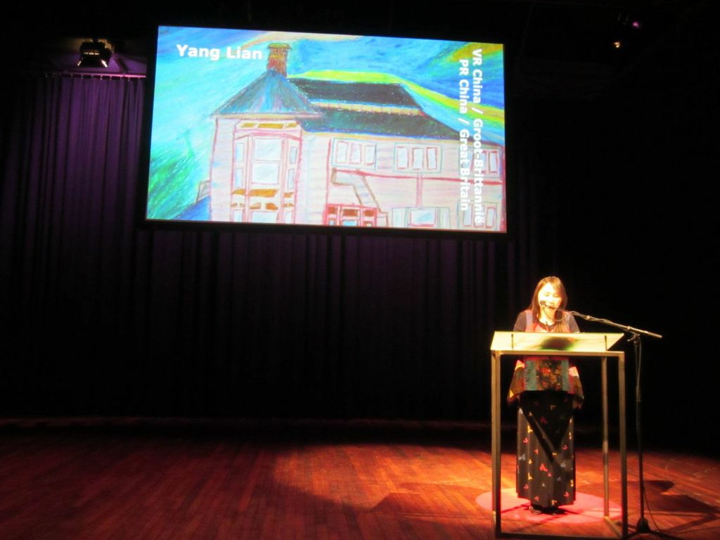 From 9:30 to 11pm, the three Chinese poets Yang Lian, Qin Xiaoyu and Liao Weitang (aka Liu Waitong) gave a reading, introduced by MZ and interviewed by MZ after each reading.