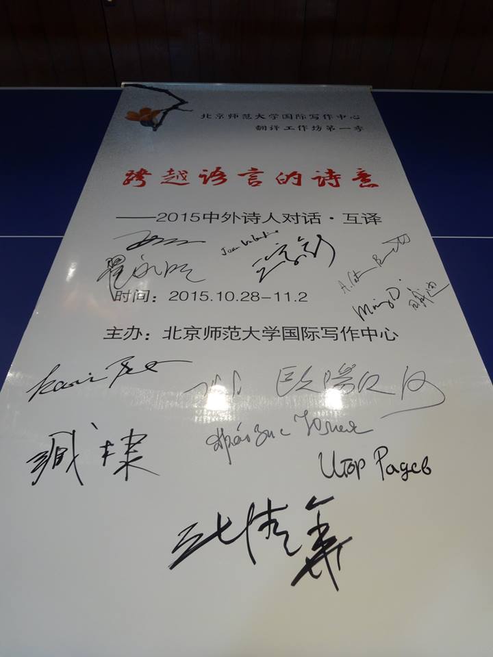 On October 28, 2015, The International Translation Workshop was launched at the International Writing Center of Beijing Normal University. A collaboration between Zhang Qinghua and Ming Di will take place in October each year inviting six international poets and six Chinese poets for mutual/cross translations (of the six international guests there will be three sinologists each year who will serve as interpreters in the workshops as well as translating directing from Chinese into their native languages.)