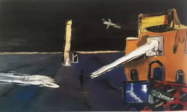 锋植的画面有时给人以“变戏法”的感觉,速度极快,画面上的各处呼应都具有远程的关联,绝不拘于局部,整个画面是交响性的,从最灰暗的低音混响到最尖利刺耳的高音,一应俱全,且信手而至。