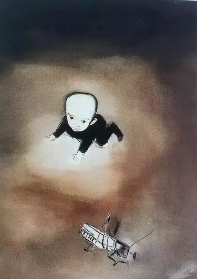 锋植画过的东西很多,广场、天安门、纪念碑、青蛙、风筝、酒瓶子、蚂蚱、老婆、孩子。