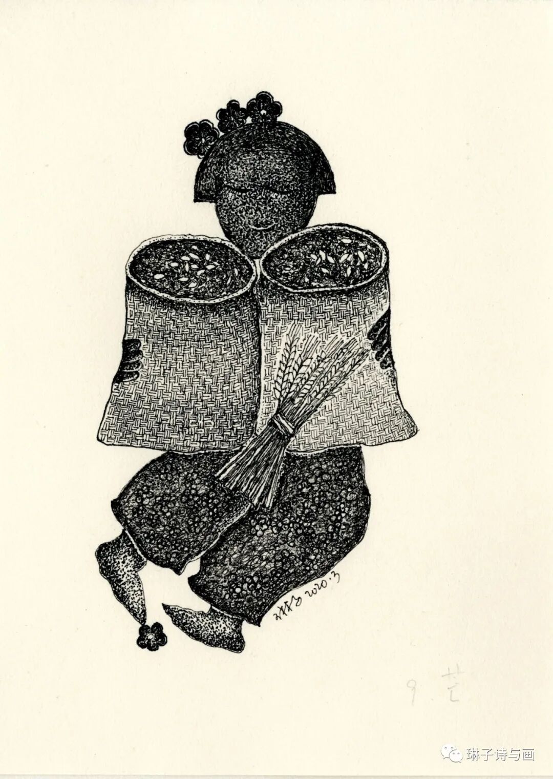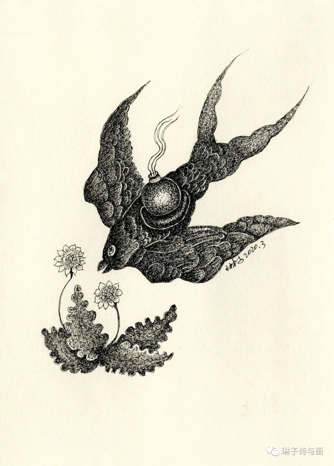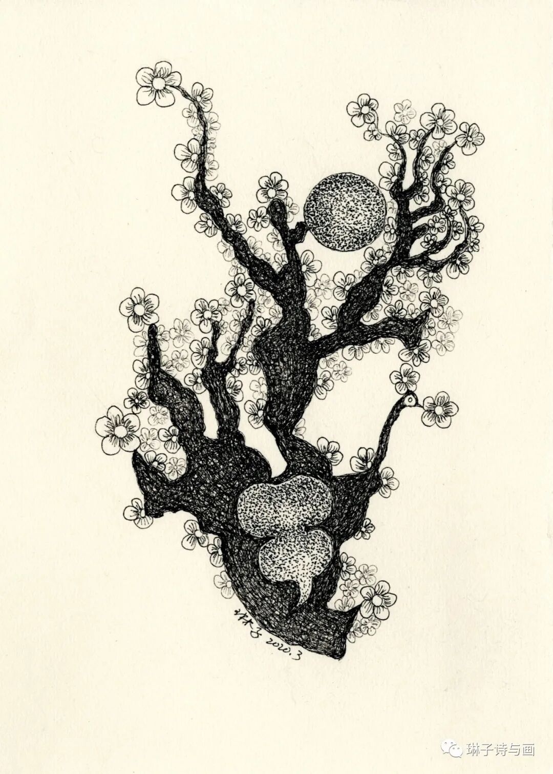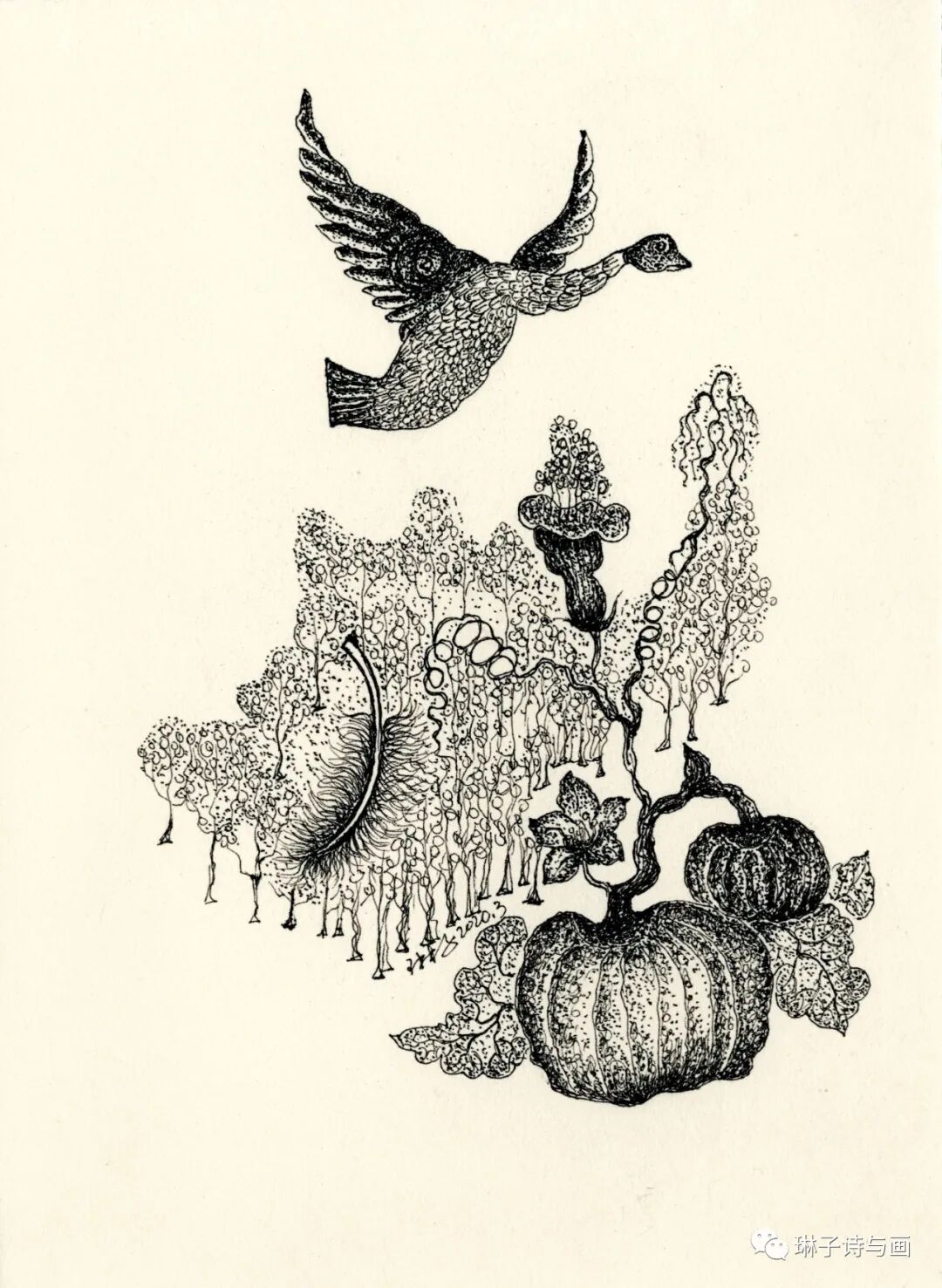 琳子,出生河南滑县,河南省文学院签约作家,北京上苑艺术馆2018年驻留艺术家。出版诗画合集《花朵里开花》、诗集《最好的太阳》等文本多部。童话散文集《草手镯》获“河南省第六届文学艺术优秀成果奖”。2017年为《解放军文艺》创作全年封面图案,2019年和2020年为《诗歌月刊》创作全年封面图案。“与诗同在——琳子钢笔画个展”2018年9月在北京上苑艺术馆举办。