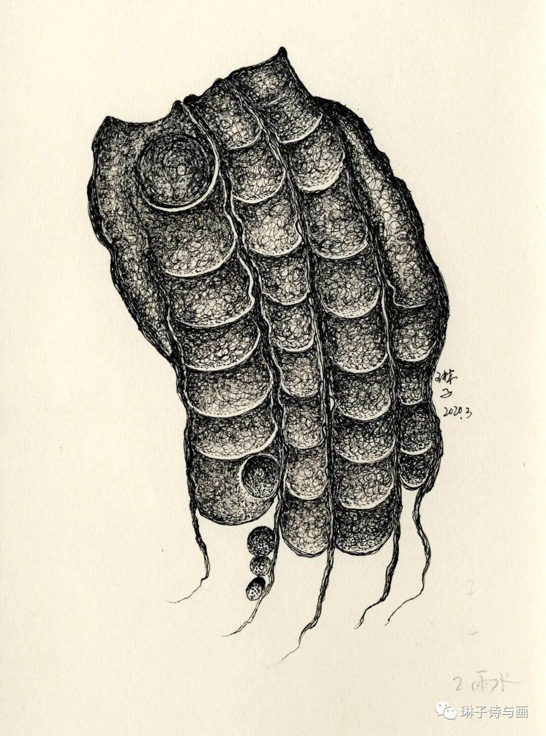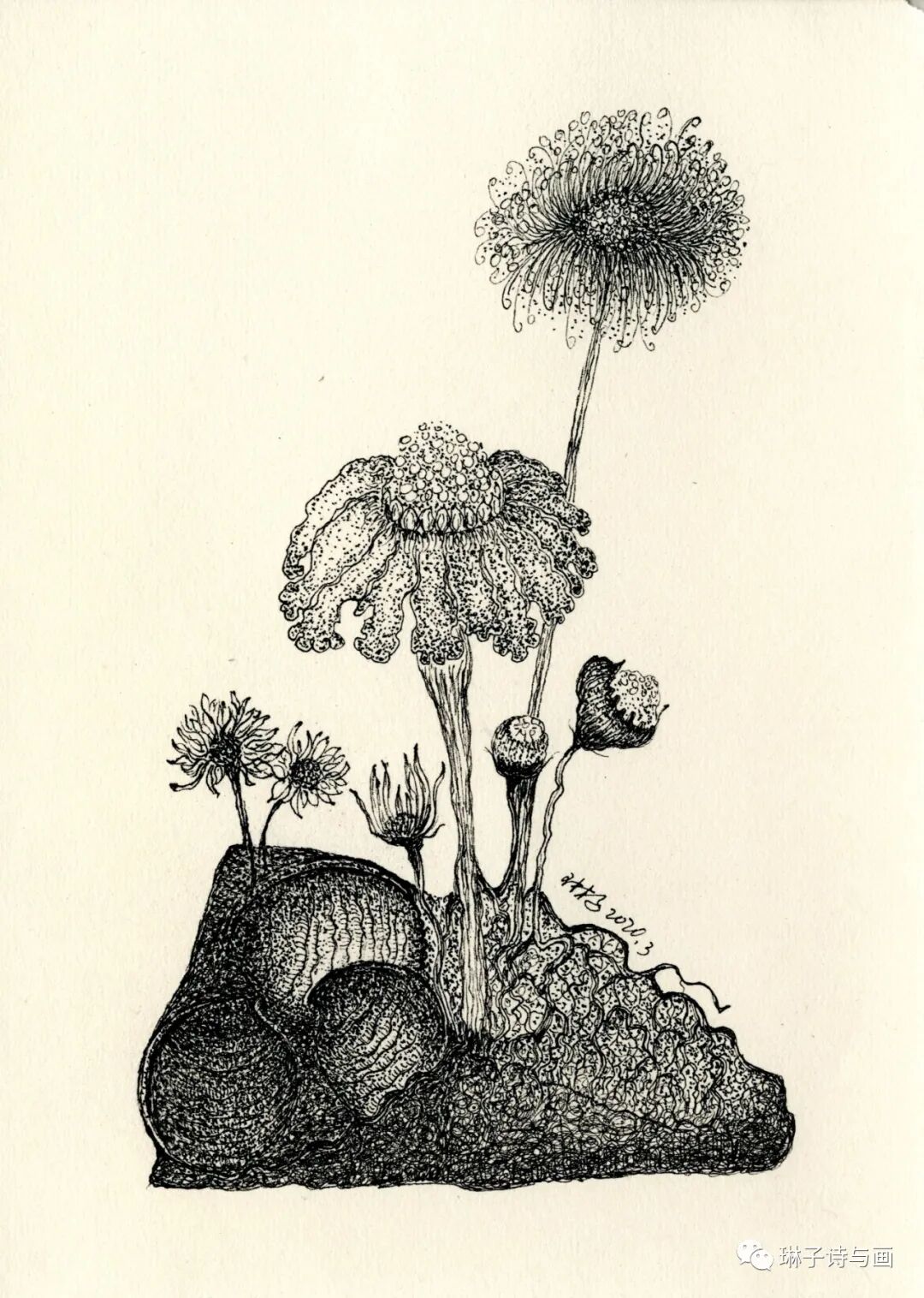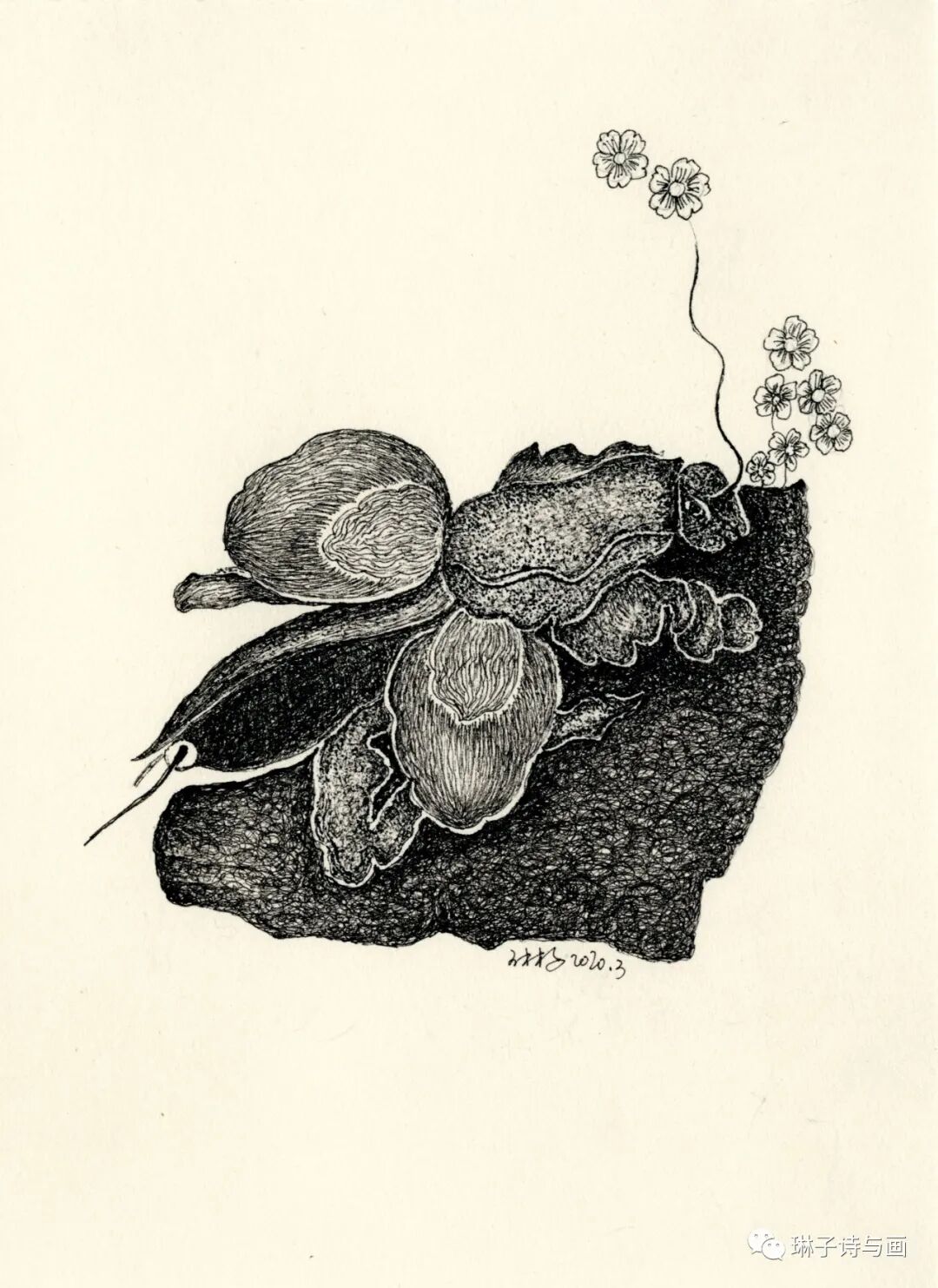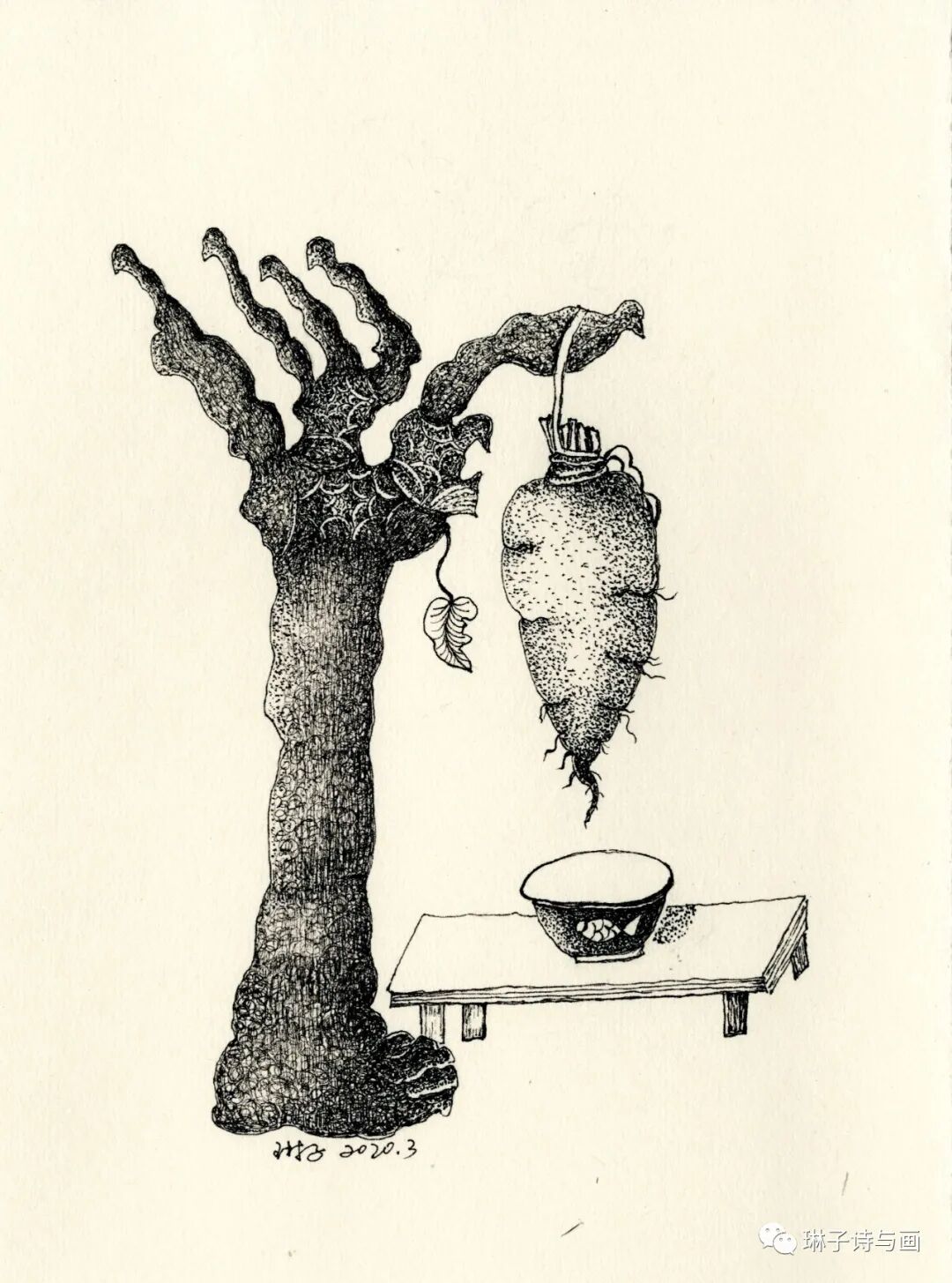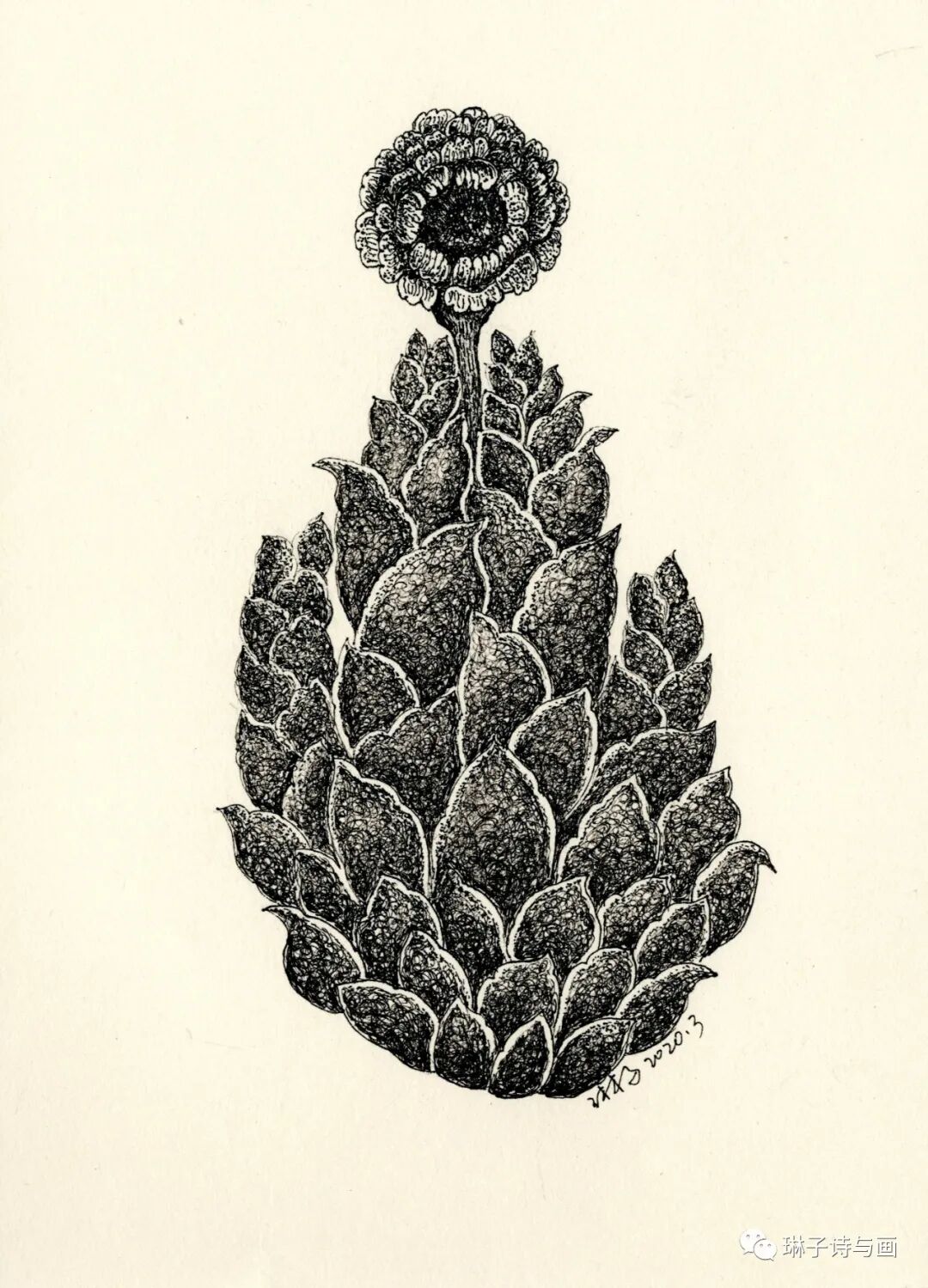 琳子,出生河南滑县,河南省文学院签约作家,北京上苑艺术馆2018年驻留艺术家。出版诗画合集《花朵里开花》、诗集《最好的太阳》等文本多部。童话散文集《草手镯》获“河南省第六届文学艺术优秀成果奖”。2017年为《解放军文艺》创作全年封面图案,2019年和2020年为《诗歌月刊》创作全年封面图案。“与诗同在——琳子钢笔画个展”2018年9月在北京上苑艺术馆举办。