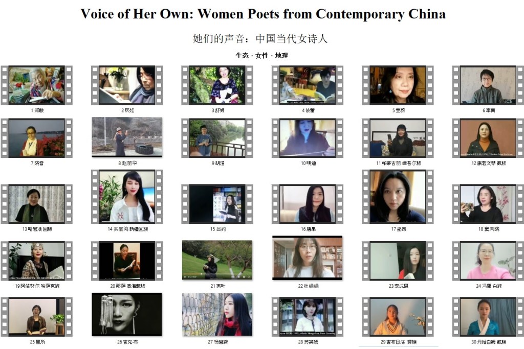 “Poetry Across the Oceans 频道”女诗系列收集了43位中国当代女诗人的短视频,从中挑选出30件合成了《她们的声音:中国当代女诗人》40分钟短片,2022年2-3月在欧洲诗歌节联盟“勇敢新文学”节参展,此为女诗部落格第一辑,主题:生态·女性·地理。